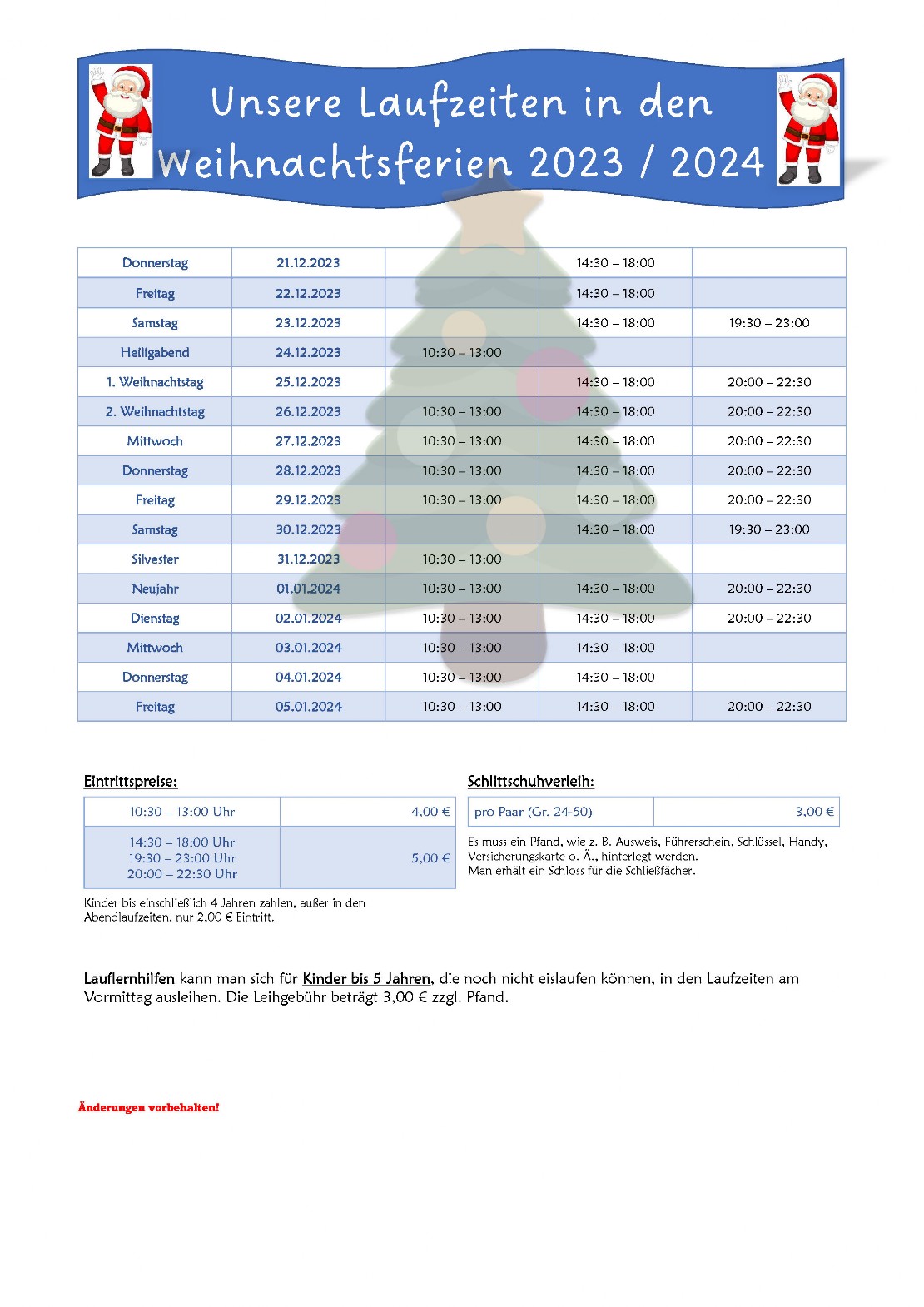 Weihnachtsferien 2023/2024 - Eislaufcenter Wesel